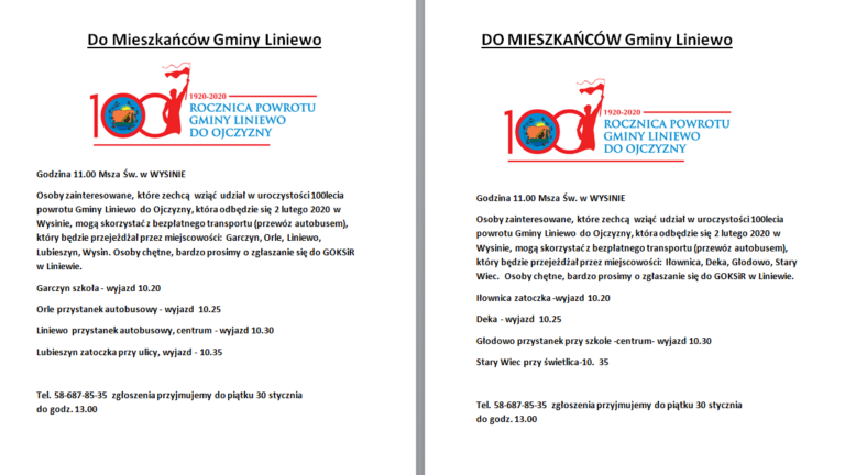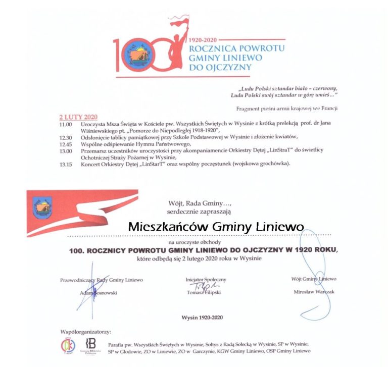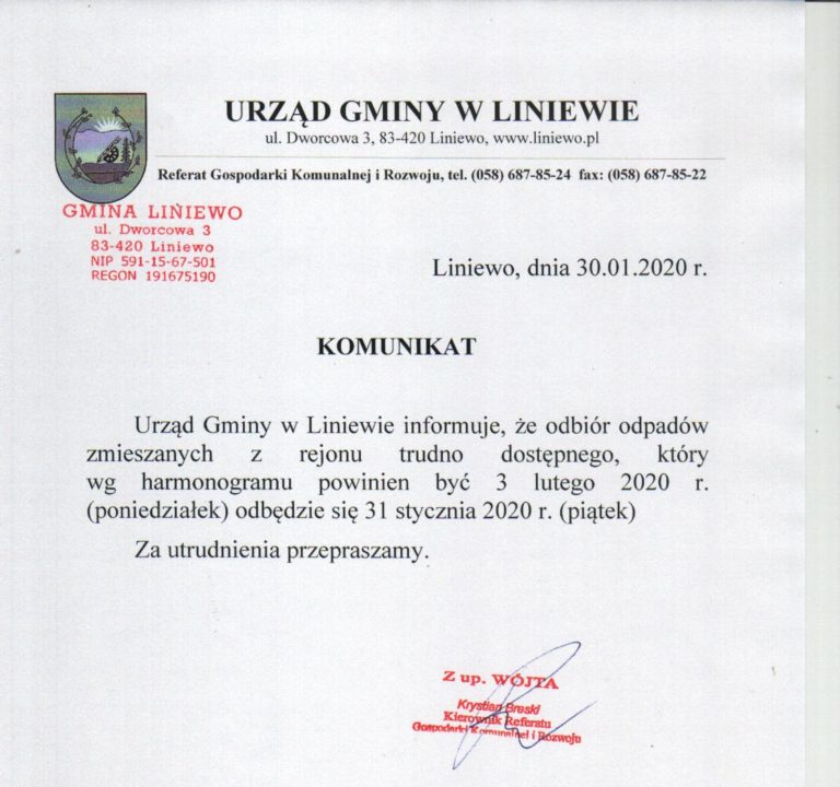 Ogłoszenie Wójta Gminy Liniewo