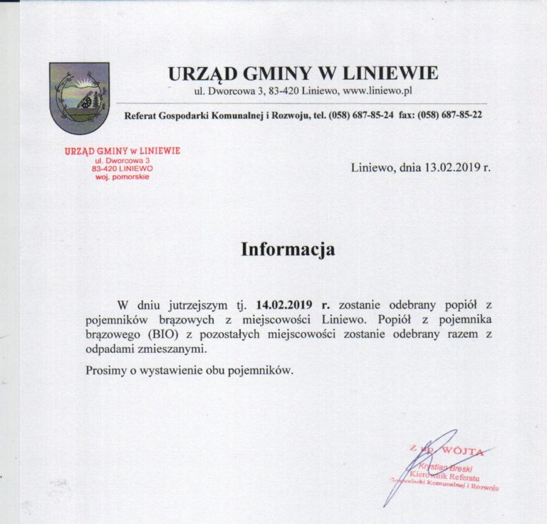 INFORMACJA Urząd Gminy Liniewo zwraca się zgodnie z art. 11a ust 7 ustawy z dnia 21 sierpnia 1997 r. o ochronie zwierząt ( Dz. U. z 2019 r. poz. 122) o wyrażenie opinii na temat „Programu opieki nad zwierzętami bezdomnymi oraz zapobiegania bezdomności zwierząt…