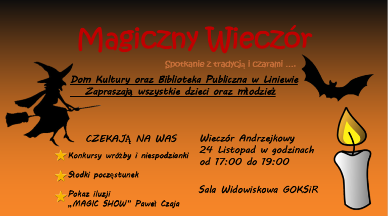 7 listopada 2018r. w sali widowiskowej Domu Kultury w Liniewie odbył się zorganizowany przez Gminną Bibliotekę Publiczną, spektakl autorski Teatru Edukacji i Profilaktyki „Maska” z Krakowa pt. „Opowieści z teczki profesora Książeczki”. Widzami teatrzyku były dzieci z Przedszkola „Wesołe Promyczki”, zerówka oraz uczniowie klas…