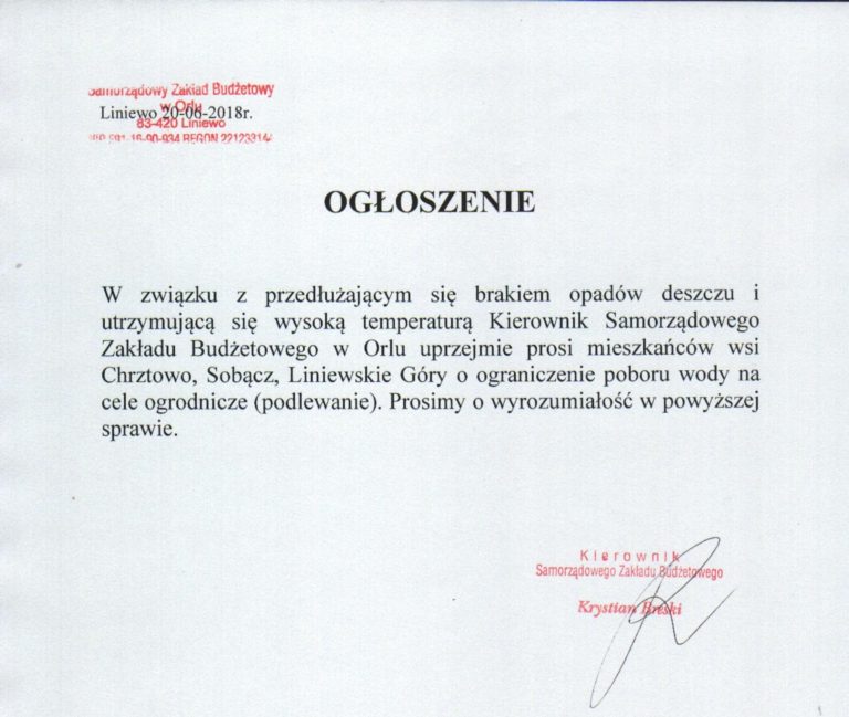 Gminny Ośrodek Sportu Kultury i Rekreacji informuje